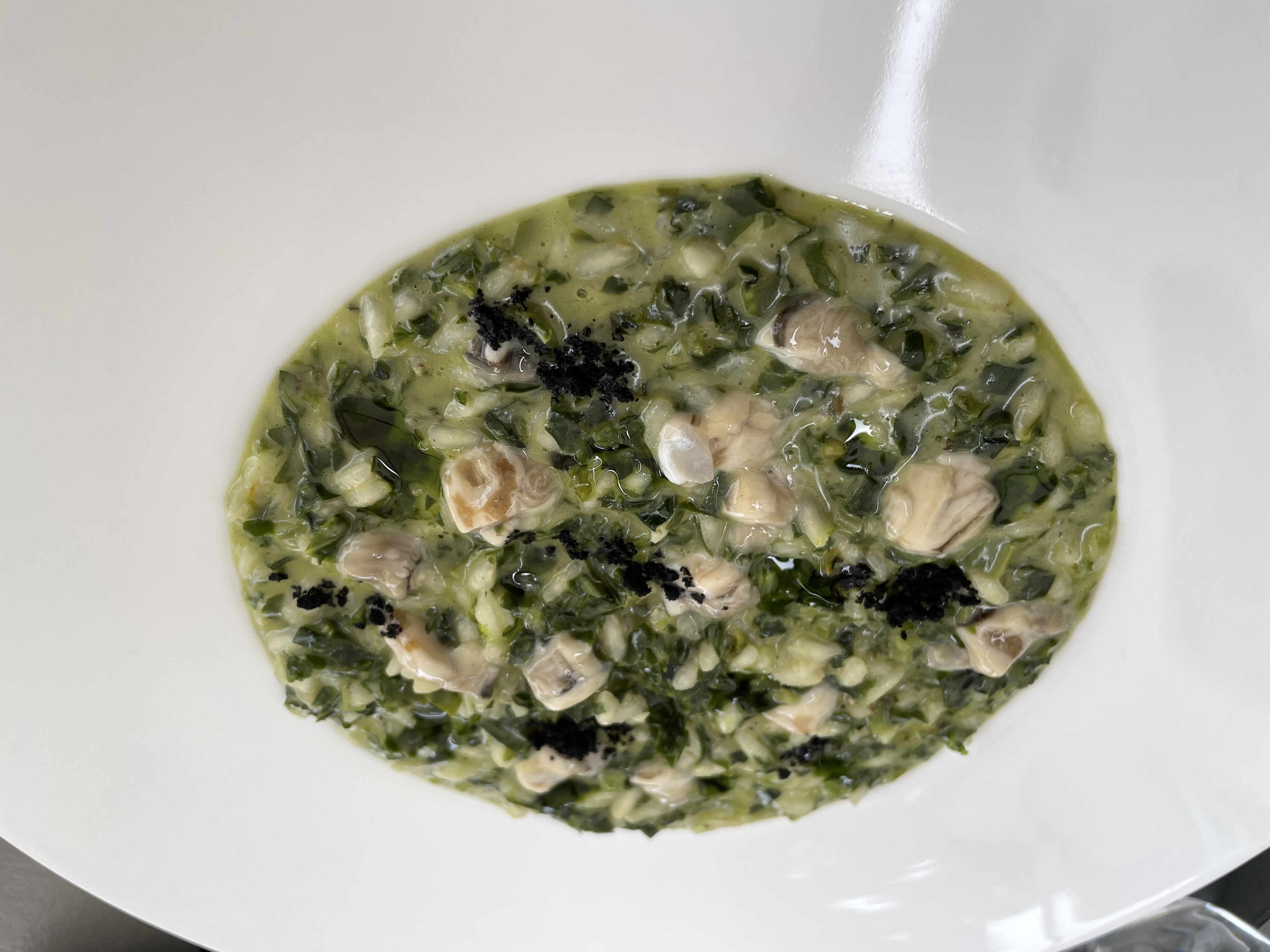 Risotto alle erbette, tarassaco, ortica, ed ostriche