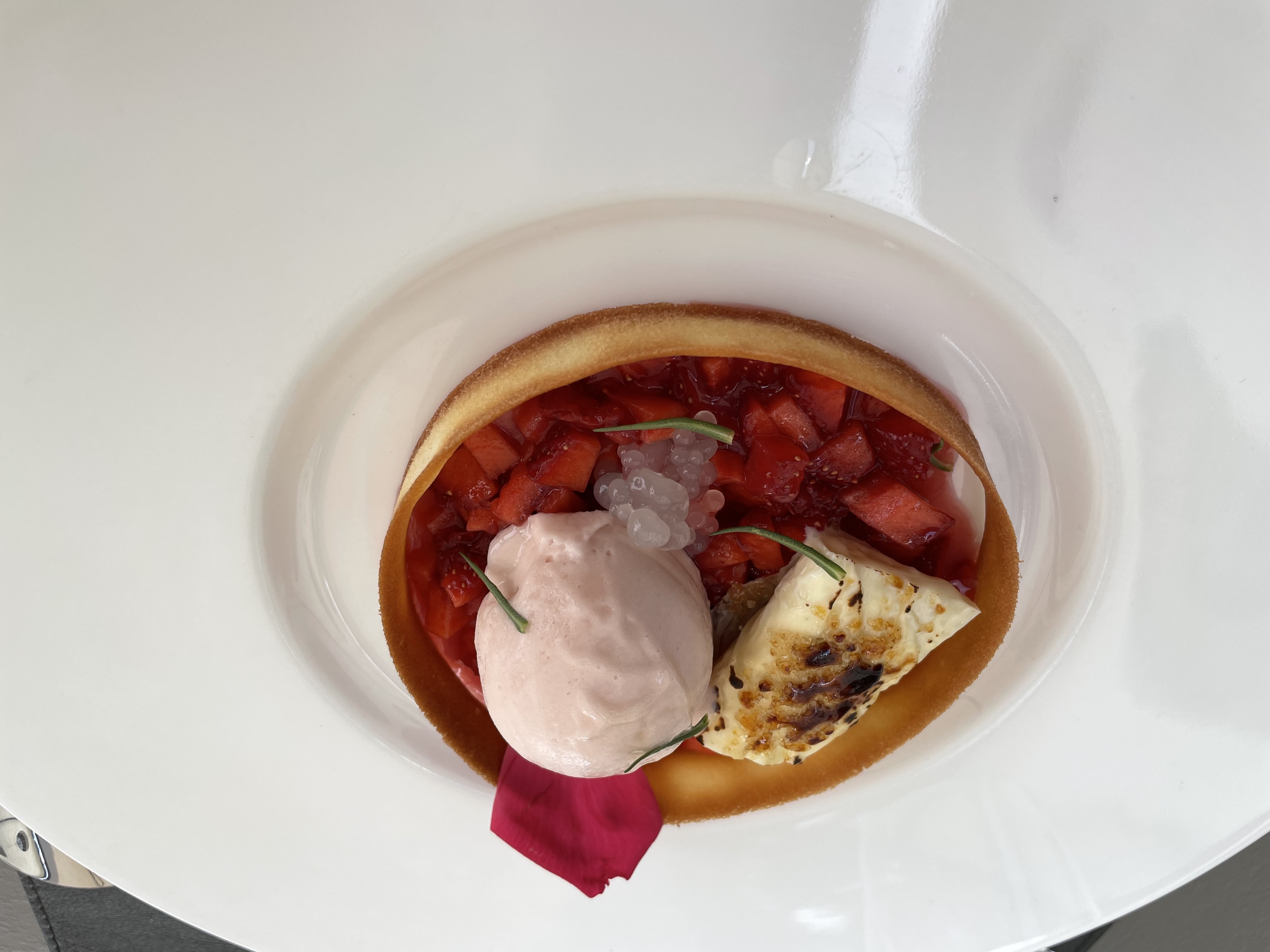 Gelato al rabarbaro, concassé di fragole